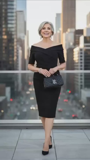 Ismerd meg az időtlen elegancia új szintjét a TSH584 modellünkkel! Ez a gyönyörű, testhezálló (bodycon) ruha tökéletes választás, ha szeretnéd kiemelni nőies vonalaidat, miközben megőrzöd a kifinomult stílust. A különleges, ejtett vállmegoldás (off-shoulder) érzékivé, míg a háromnegyedes ujj visszafogottá és elegánssá teszi a megjelenést.