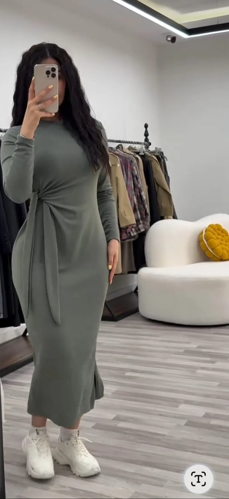TSH569 – Derékban megkötős, hosszú ujjú midi ruha